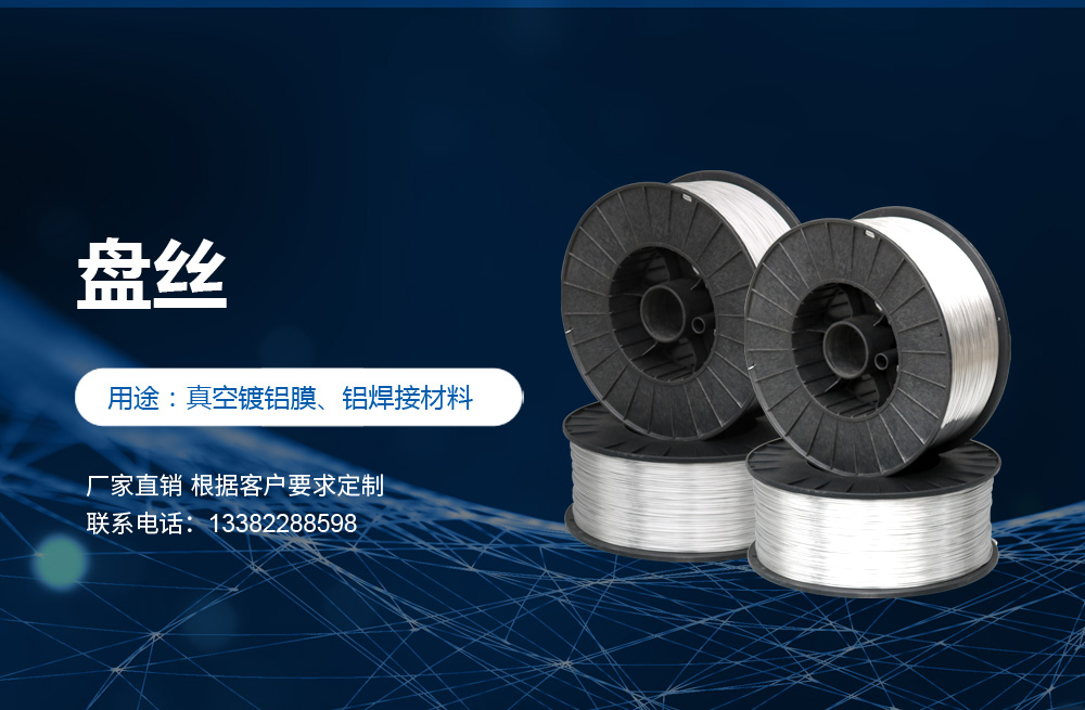 高純度鋁絲:公司主打產(chǎn)品。SGS認證產(chǎn)品,適用于真空鍍鋁。可為客戶量身定做生產(chǎn)的各盤裝鋁絲、鋁直條。產(chǎn)品應用領域十分廣泛,如:真空鍍鋁膜、電器儀表、電子、家電業(yè)、電線電纜業(yè)、建筑裝飾業(yè)、五金裝飾業(yè)、IT電腦業(yè)、廣告裝飾業(yè)、醫(yī)療器械、工藝制品、防腐制品(大型港口、橋梁、碼頭)、食品包裝容器、紡織服裝等。